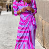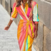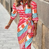 Entdecken Sie mühelose Eleganz mit diesem Sommer-Wickelkleid aus leichtem, atmungsaktivem Rayon, das Sie kühl und stilvoll hält. Mit seinem schicken Kragenausschnitt und dem verstellbaren Wickeldesign bietet es einen eleganten und dennoch entspannten Look, der sich ideal für Brunchs, Strandspaziergänge oder ungezwungene Abende eignet. Diese leicht zu tragende Silhouette betont Ihre Kurven und bietet gleichzeitig Komfort und Vielseitigkeit in den wärmeren Monaten.