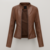 Werten Sie Ihre Garderobe mit dieser eleganten PU-Lederjacke auf. Der markante Stehkragen und der durchgehende Reißverschluss sorgen für einen modernen, minimalistischen Look. Gefertigt aus wasserabweisendem Kunstleder, bietet sie eleganten Streetstyle mit einem Hauch von Moto – ideal zum Tragen über T-Shirts oder Kleidern.