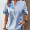 Werten Sie Ihre Alltagsgarderobe mit dieser Bluse auf. Sie ist aus weichem, atmungsaktivem Stoff gefertigt und sorgt den ganzen Tag über für ein kühles und stilvolles Tragegefühl. Mit eleganten Längsstreifen und einem schicken Stehkragen verleiht dieser Bluse klassischer Schneiderkunst einen modernen Touch. Die kurzen Ärmel mit Manschetten sorgen für einen eleganten und dennoch entspannten Look, der sich nahtlos mit der Arbeitskleidung zum Wochenendausflug kombinieren lässt.