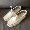 Ein elegantes Paar Bootsschuhe mit traditioneller Mokassin-Silhouette und Kontrastnähten. Perfekt für elegante Freizeitoutfits an der Küste, am Yachthafen oder kombiniert mit Chinos für den City-Flair.