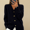 Hüllen Sie sich in Wärme und Stil mit dieser Strick-Strickjacke mit V-Ausschnitt – ein lässiges Must-have für kühle Tage. Diese Strickjacke aus einem weichen Acryl-Polyester-Mix besticht durch ihren schmeichelhaften geraden Schnitt, lange Ärmel und eine Knopfleiste vorne für einfaches Lagenlook-Outfit. Die einfarbige und mittlere Dicke machen sie perfekt für Herbst und Winter, egal ob zu Hause, im Büro oder unterwegs.