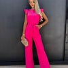 Der Jumpsuit vereint mühelos Eleganz und Komfort und ist somit eine vielseitige Wahl für formelle Anlässe und Freizeit. Mit stylischen Flügelärmeln und weiten Hosenbeinen bietet dieses Stück eine schmeichelhafte Silhouette, die Ihre natürlichen Kurven betont. Das Design mit hoher Taille verleiht einen Hauch von Raffinesse und sorgt dafür, dass Sie bei jedem Anlass elegant aussehen.