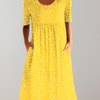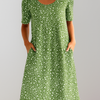 Peppen Sie Ihre Sommergarderobe mit diesem süßen, floralen Midikleid mit hoher Taille auf, das Eleganz mit Alltagstauglichkeit verbindet. Es ist aus leichtem Polyesterstrick gefertigt und verfügt über eine schmeichelhafte A-Linien-Silhouette, einen O-Ausschnitt und weiche kurze Ärmel für einen entspannten und dennoch eleganten Look. Die Empire-Taille betont Ihre Figur, während die doppelten Seitentaschen für Funktionalität sorgen, ohne den Stil zu beeinträchtigen.