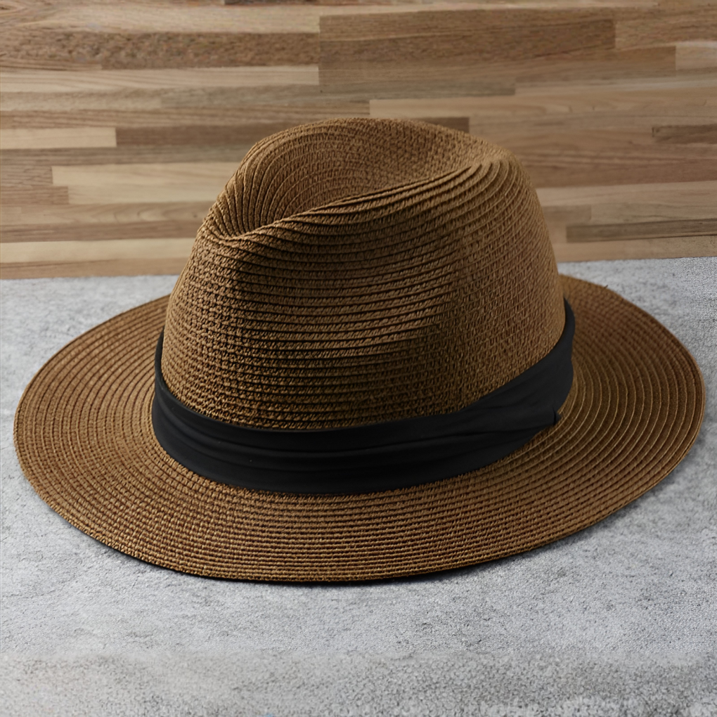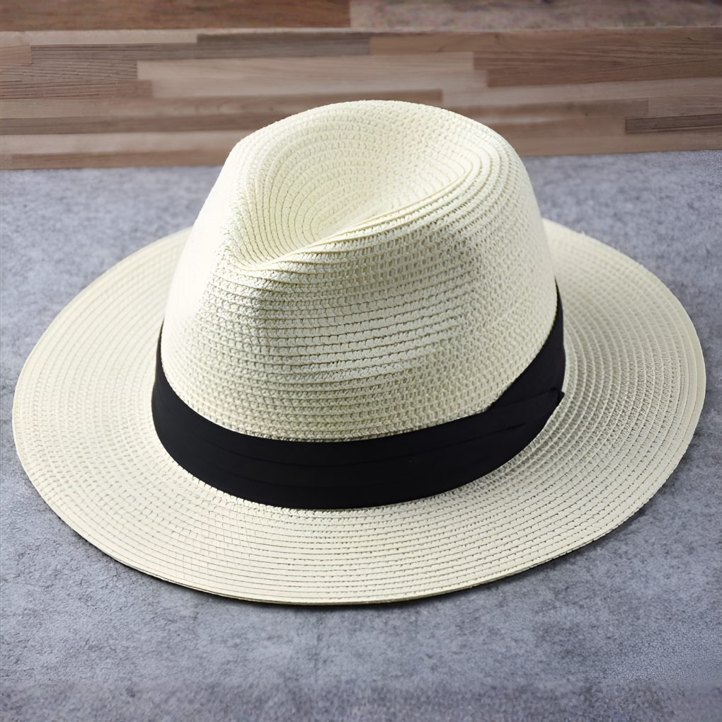 Erfrischen Sie Ihre Garderobe mit diesem handgefertigten Panamahut, der luftige Eleganz und sonnenverwöhnten Stil für warme Tage bietet. Geflochten aus atmungsaktivem Toquilla-Stroh, sorgt dieser Hut für leichtes Tragegefühl und eine anmutige Silhouette. Die breite Krempe bietet ausreichend Sonnenschutz, während das raffinierte Design jedem Outfit zeitlosen Charme verleiht.