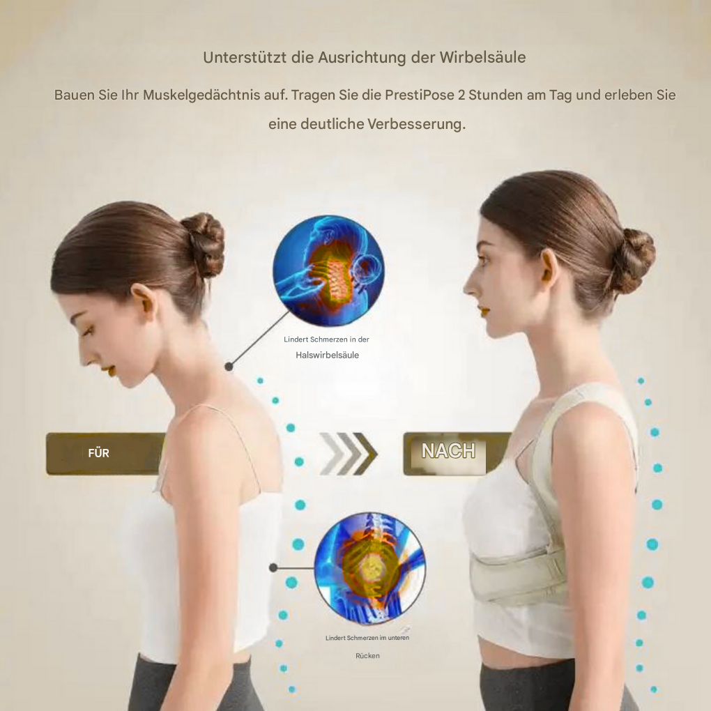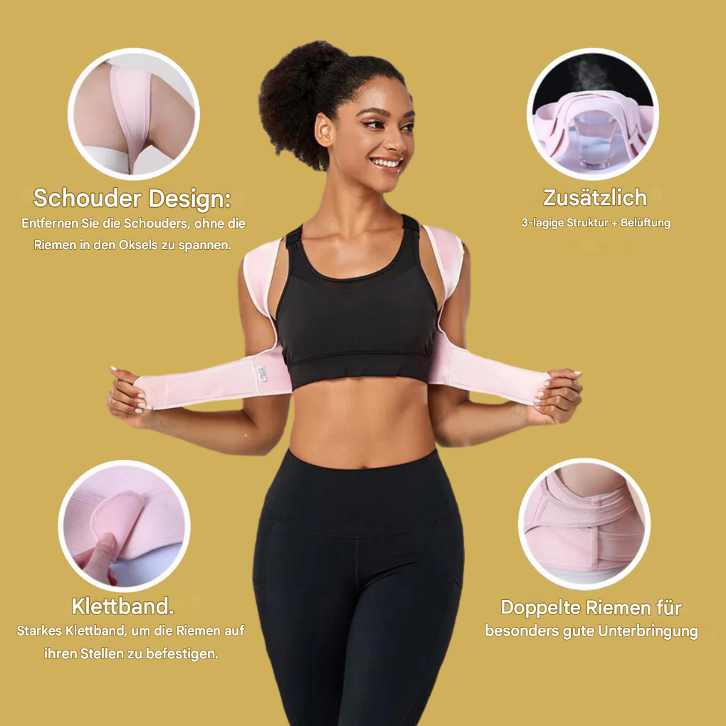Ein versteckter Haltungskorrektor, der eine aufrechte Position des Rückens und der Schultern beim Sitzen, Stehen oder Bewegen fördert.