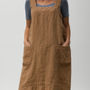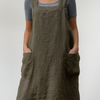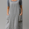 Damenkleid im Stil einer Baumwoll-Leinen-Schürze mit Taschen
