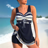 Fühlen Sie sich selbstbewusst und unterstützt im Tankini-Set, das Ihre Silhouette betont und gleichzeitig ganztägigen Komfort bietet. Dieser stylische Zweiteiler besteht aus einem fließenden Tankini-Oberteil mit integriertem Bauch-weg-Panel und verstellbaren Trägern, kombiniert mit der passenden Hose für einen eleganten, abgestimmten Look. Hergestellt aus dehnbarem, schnelltrocknendem Material, ist es perfekt für Strandtage, zum Entspannen am Pool oder für Urlaubsausflüge.